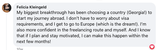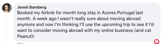 Feeling a little overwhelmed about the move? Not sure if moving abroad is really right for you? Every day I’ll be hopping on LIVE in the Facebook group to cover one major mindset obstacle that’s keeping you stuck. Tune in live while you enjoy your morning coffee, or watch the replay whenever you’re free!