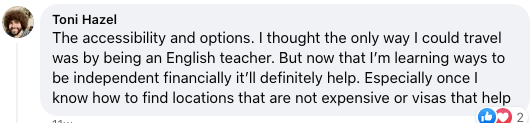 “I originally joined because I was overwhelmed by all the information out there and I was getting lost in the sea of it all. Then I came across Richelle’s Instagram and blog and realized this is a real person giving real stories of life abroad. I felt really good about working with Richelle because I knew I’d need help and have questions to ask. She gave me more confidence that I won’t be going into teaching abroad blindly.” – Sarah Anderson